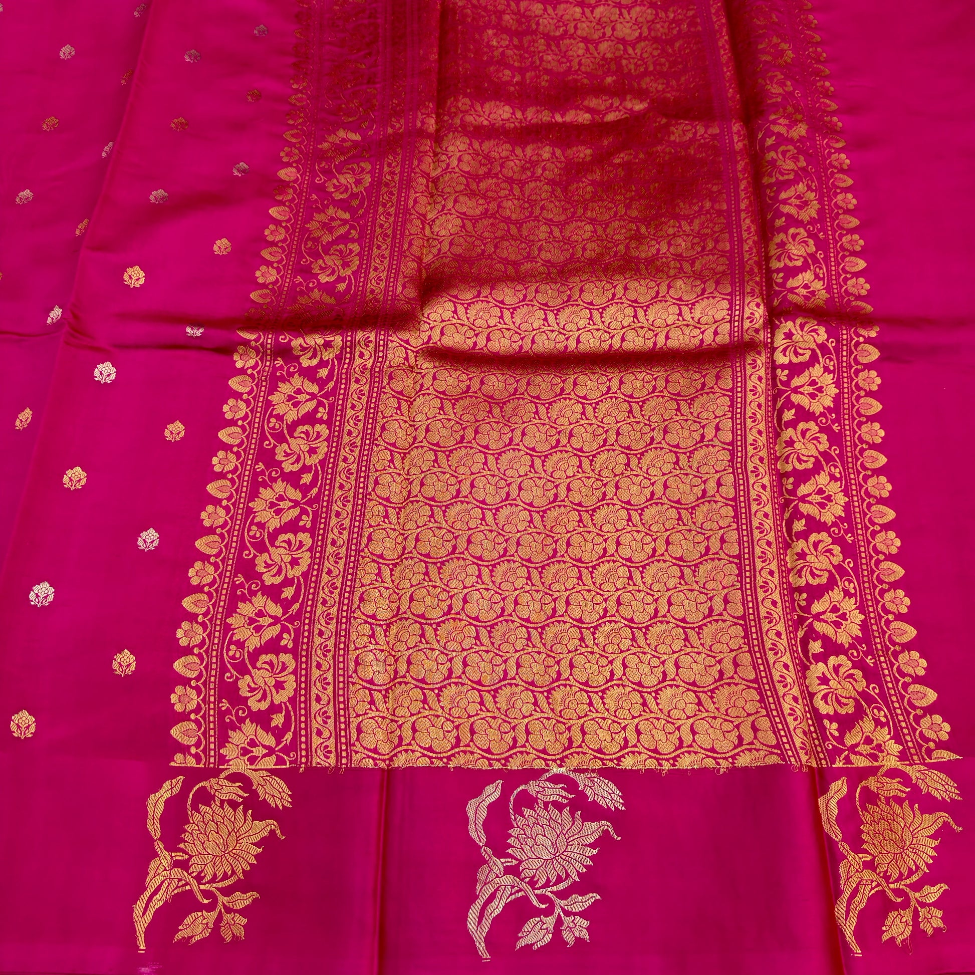 This handwoven Katan silk saree is a celebration of India’s rich textile heritage. Crafted by skilled artisans using traditional Kadwa weaving, each piece reflects hours of meticulous craftsmanship, making it not just attire—but an heirloom.